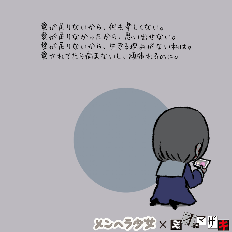 メンヘラ少女 Twitter Da 愛が足りないから 何も楽しくない 愛が足りなかったから 思い出せない 愛が足りないから 生きる理由がない私は 愛されてたら病まないし 頑張れるのに 鬱鬱 ミオヤマザキ メンヘラ少女 ミオヤマザキ